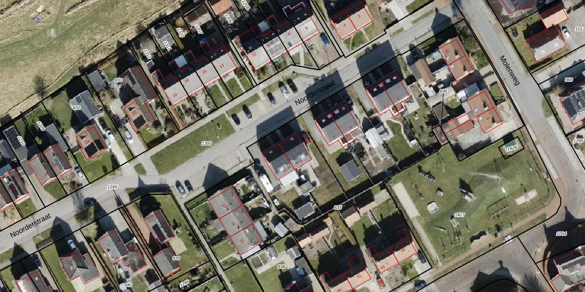 Het perceel waarop Noorderstraat 9 staat heeft een oppervlakte van 4896 m². Dit is een zeer groot perceel. De perceeloppervlakte wordt geregistreerd door het Kadaster. Gedetailleerde informatie over de maten van dit perceel kunt u vinden in het rapport Kadastrale kaart met maatvoering van Noorderstraat 9.