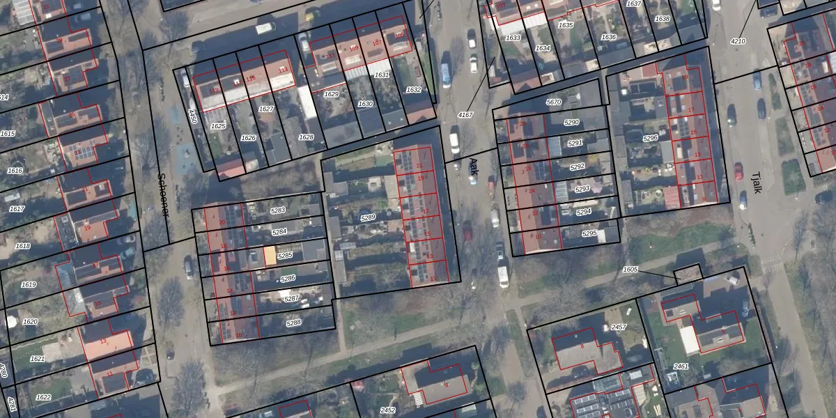Het perceel waarop Aak 17 staat heeft een oppervlakte van 1066 m². Dit is een zeer groot perceel. De perceeloppervlakte wordt geregistreerd door het Kadaster. Gedetailleerde informatie over de maten van dit perceel kunt u vinden in het rapport Kadastrale kaart met maatvoering van Aak 17.