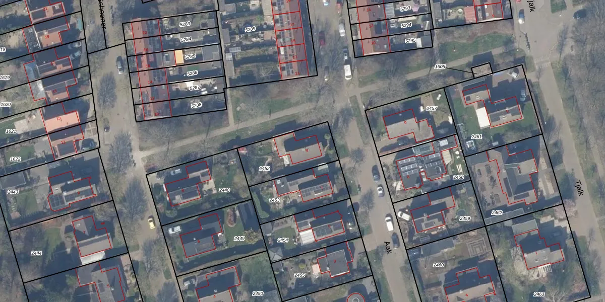 Het perceel waarop Aak 9 staat heeft een oppervlakte van 415 m². Dit is een groot perceel. De perceeloppervlakte wordt geregistreerd door het Kadaster. Gedetailleerde informatie over de maten van dit perceel kunt u vinden in het rapport Kadastrale kaart met maatvoering van Aak 9.