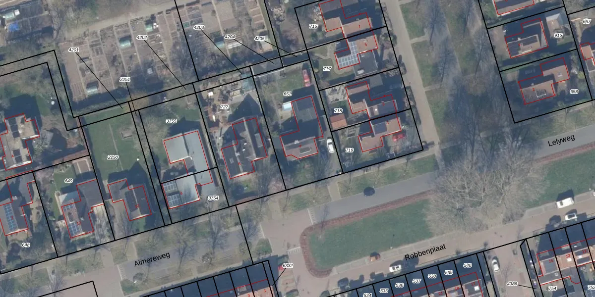 Het perceel waarop Almereweg 4 staat heeft een oppervlakte van 800 m². Dit is een groot perceel. De perceeloppervlakte wordt geregistreerd door het Kadaster. Gedetailleerde informatie over de maten van dit perceel kunt u vinden in het rapport Kadastrale kaart met maatvoering van Almereweg 4.