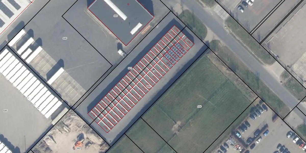 Het adres is gelegen op perceel 655 in de sectie F en de kadastrale gemeente Zeewolde. De kadastrale aanduiding is aldus ZWD03-F-655. Het perceel is 1825 m² groot. Dat is kleiner dan de gemiddelde perceeloppervlakte in Zeewolde, dat op 1,9 ha ligt. Het kleinste perceel in de kadastrale gemeente is 0 m² groot. De grootste perceeloppervlakte is 6,16 km². Op het perceel zijn 25 adressen aanwezig. De huidige grenzen van het perceel zijn digitaal in de Basisregistratie Kadaster (BRK) geregistreerd op 20-06-2017.