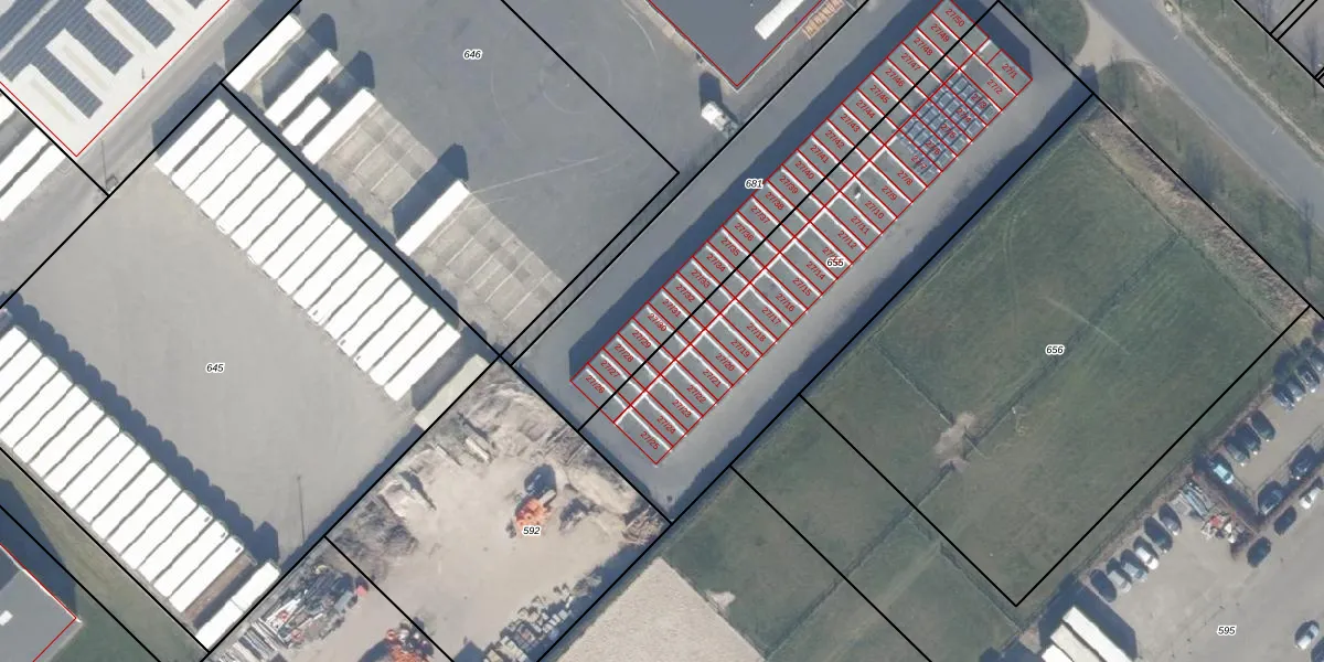 Het adres is gelegen op perceel 681 in de sectie F en de kadastrale gemeente Zeewolde. De kadastrale aanduiding is aldus ZWD03-F-681. Het perceel is 1290 m² groot. Dat is kleiner dan de gemiddelde perceeloppervlakte in Zeewolde, dat op 1,9 ha ligt. Het kleinste perceel in de kadastrale gemeente is 0 m² groot. De grootste perceeloppervlakte is 6,16 km². Er zijn 25 adressen aanwezig op het perceel. De huidige grenzen van het perceel zijn digitaal in de Basisregistratie Kadaster (BRK) geregistreerd op 31-07-2018.