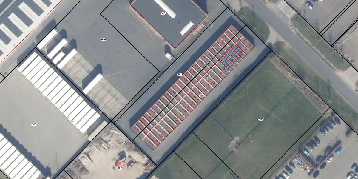 Het adres is gelegen op perceel 681 in de sectie F en de kadastrale gemeente Zeewolde. De kadastrale aanduiding is aldus ZWD03-F-681. Het perceel is 1290 m² groot. Dat is kleiner dan de gemiddelde perceeloppervlakte in Zeewolde, dat op 1,9 ha ligt. Het kleinste perceel in de kadastrale gemeente is 0 m² groot. De grootste perceeloppervlakte is 6,16 km². Op het perceel liggen in totaal 25 adressen. De huidige grenzen van het perceel zijn digitaal in de Basisregistratie Kadaster (BRK) geregistreerd op 31-07-2018.
