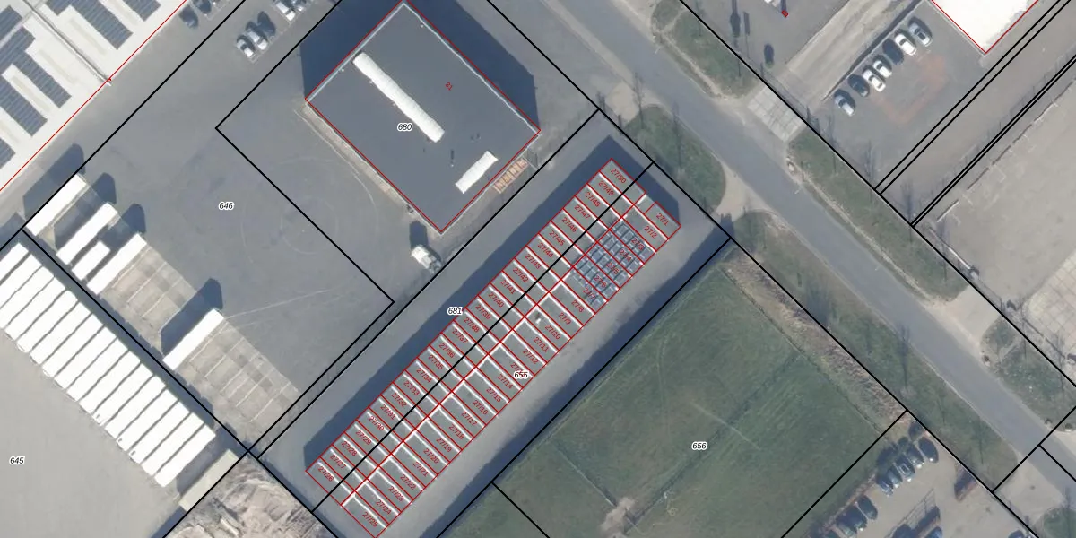 Het adres is gelegen op perceel 681 in de sectie F en de kadastrale gemeente Zeewolde. De kadastrale aanduiding is aldus ZWD03-F-681. Het perceel is 1290 m² groot. Dat is kleiner dan de gemiddelde perceeloppervlakte in Zeewolde, dat op 1,9 ha ligt. De grootste perceeloppervlakte in de kadastrale gemeente is 6,16 km². De kleinste oppervlakte bedraagt 0 m². Op het perceel zijn 25 adressen aanwezig. In de Basisregistratie Kadaster (BRK) werden de grenzen van het perceel geregistreerd op 31-07-2018.