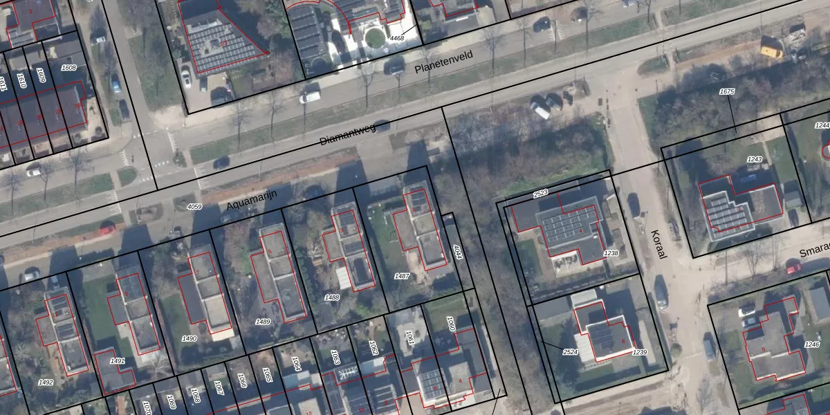 Het perceel waarop Aquamarijn 1 staat heeft een oppervlakte van 585 m². Dit is een groot perceel. De perceeloppervlakte wordt geregistreerd door het Kadaster. Gedetailleerde informatie over de maten van dit perceel kunt u vinden in het rapport Kadastrale kaart met maatvoering van Aquamarijn 1.