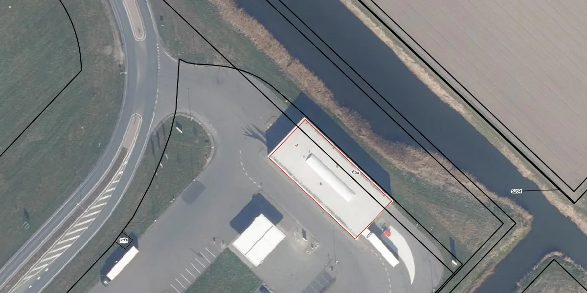 Het adres is gelegen op perceel 720 in de sectie F en de kadastrale gemeente Zeewolde. De kadastrale aanduiding is aldus ZWD03-F-720. Het perceel is kleiner dan gemiddeld in Zeewolde. Het perceel is 1,4 ha groot, terwijl het gemiddelde ligt op 1,9 ha. De grootste perceeloppervlakte in de kadastrale gemeente is 6,16 km². De kleinste oppervlakte bedraagt 0 m². Dit is het enige adres dat aanwezig is op het perceel. De huidige grenzen van het perceel zijn digitaal in de Basisregistratie Kadaster (BRK) geregistreerd op 06-05-2019.