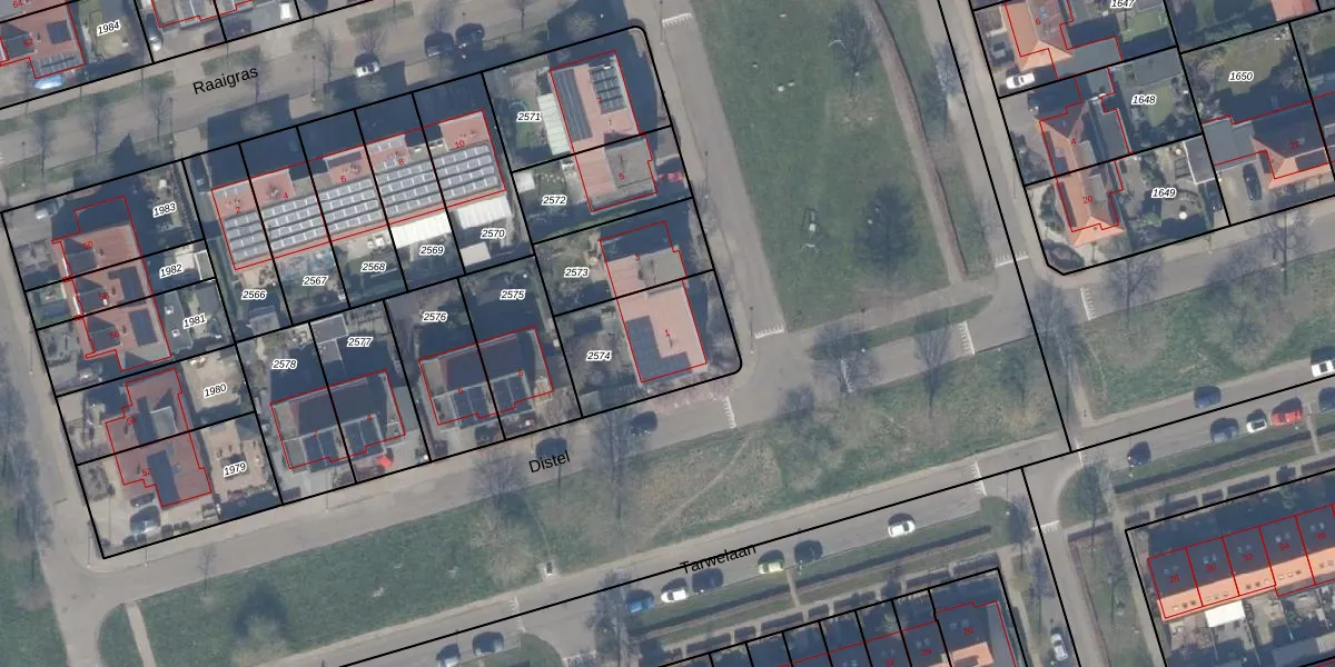 Gebruik de zoekbalk of klik op een perceel voor informatie over de adressen binnen dit perceel.
