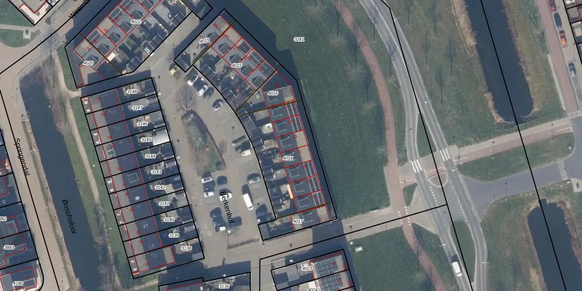 Het adres is gelegen op perceel 4018 in de sectie E en de kadastrale gemeente Zeewolde. De kadastrale aanduiding is aldus ZWD03-E-4018. Het perceel is 767 m² groot. Dat is kleiner dan de gemiddelde perceeloppervlakte in Zeewolde, dat op 1,9 ha ligt. De grootste perceeloppervlakte in de kadastrale gemeente is 6,16 km². De kleinste oppervlakte bedraagt 0 m². Er zijn 7 adressen aanwezig op het perceel. De huidige grenzen van het perceel zijn digitaal in de Basisregistratie Kadaster (BRK) geregistreerd op 30-11-2017.