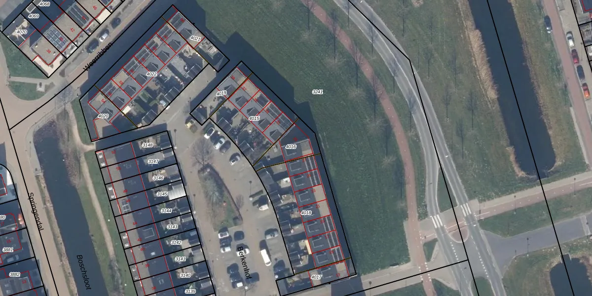 Het adres is gelegen op perceel 4016 in de sectie E en de kadastrale gemeente Zeewolde. De kadastrale aanduiding is aldus ZWD03-E-4016. Het perceel is 185 m² groot. Dat is kleiner dan de gemiddelde perceeloppervlakte in Zeewolde, dat op 1,9 ha ligt. Het grootste perceel in de kadastrale gemeente is 6,16 km². Het kleinste perceel heeft een oppervlakte van 0 m². Er zijn geen andere adressen aanwezig op het perceel. In de Basisregistratie Kadaster (BRK) werden de grenzen van het perceel geregistreerd op 30-11-2017.
