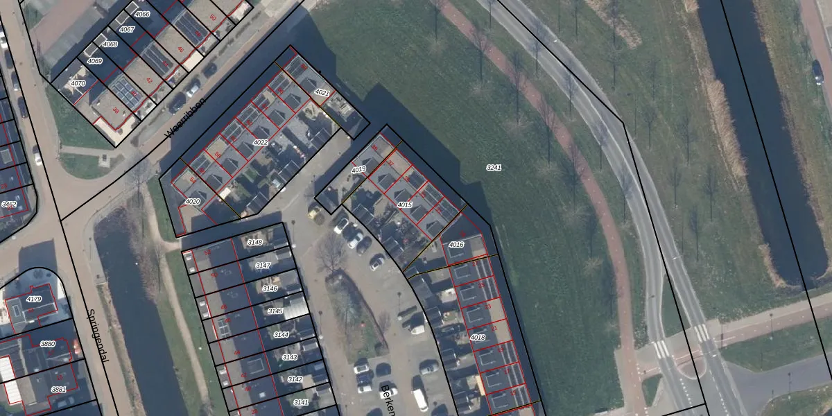 Het adres is gelegen op perceel 4015 in de sectie E en de kadastrale gemeente Zeewolde. De kadastrale aanduiding is aldus ZWD03-E-4015. Het perceel is 473 m² groot. Dat is kleiner dan de gemiddelde perceeloppervlakte in Zeewolde, dat op 1,9 ha ligt. Het grootste perceel in de kadastrale gemeente is 6,16 km². Het kleinste perceel heeft een oppervlakte van 0 m². Op het perceel liggen in totaal 4 adressen. In de Basisregistratie Kadaster (BRK) werden de grenzen van het perceel geregistreerd op 30-11-2017.