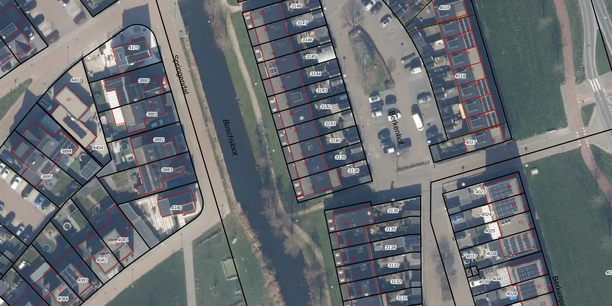 Gebruik de zoekbalk of klik op een perceel voor informatie over de adressen binnen dit perceel.