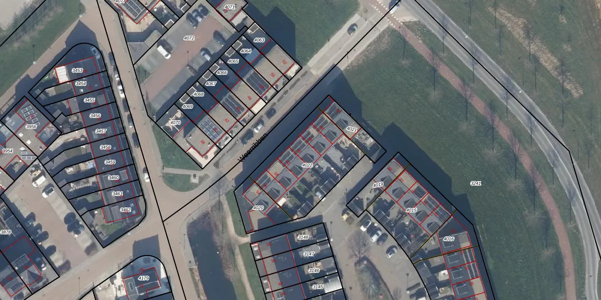 Het adres is gelegen op perceel 4022 in de sectie E en de kadastrale gemeente Zeewolde. De kadastrale aanduiding is aldus ZWD03-E-4022. Het perceel is 732 m² groot. Dat is kleiner dan de gemiddelde perceeloppervlakte in Zeewolde, dat op 1,9 ha ligt. Het grootste perceel in de kadastrale gemeente is 6,16 km². Het kleinste perceel heeft een oppervlakte van 0 m². Op het perceel liggen in totaal 6 adressen. De laatste wijziging in het de Basisregistratie Kadaster (BRK) was op 30-11-2017.