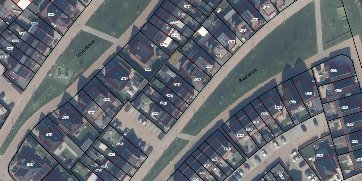 Het perceel waarop Biesbosch 18 staat heeft een oppervlakte van 228 m². Dit is een middelgroot perceel. De perceeloppervlakte wordt geregistreerd door het Kadaster. Gedetailleerde informatie over de maten van dit perceel kunt u vinden in het rapport Kadastrale kaart met maatvoering van Biesbosch 18.