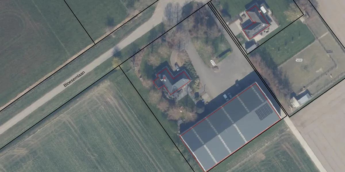 Het perceel waarop Bloesemlaan 13 staat heeft een oppervlakte van 5016 m². Dit is een zeer groot perceel. De perceeloppervlakte wordt geregistreerd door het Kadaster. Gedetailleerde informatie over de maten van dit perceel kunt u vinden in het rapport Kadastrale kaart met maatvoering van Bloesemlaan 13.