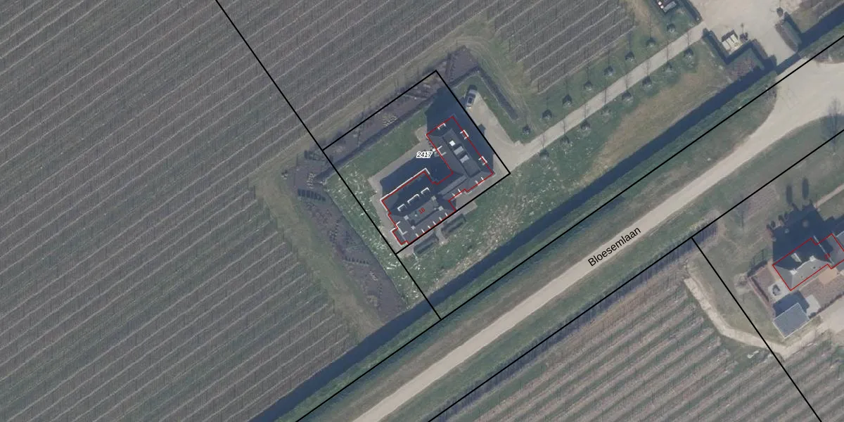 Bloesemlaan 18 is gelegen op kadastraal perceel ZWD03B2417. Deze kadastrale aanduiding is uniek en wordt gebruikt door het Kadaster om eigendomsrechten en andere zakelijke rechten vast te leggen. Het perceel maakt onderdeel uit van de kadastrale gemeente Zeewolde.