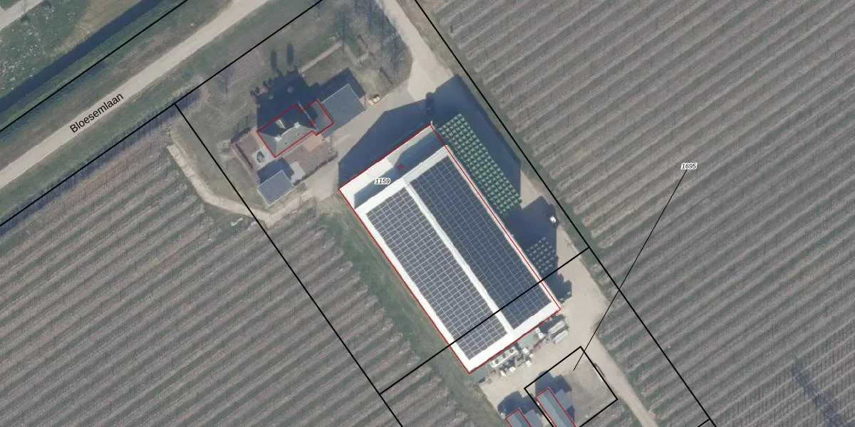 Het perceel waarop Bloesemlaan 25 staat heeft een oppervlakte van 4999 m². Dit is een zeer groot perceel. De perceeloppervlakte wordt geregistreerd door het Kadaster. Gedetailleerde informatie over de maten van dit perceel kunt u vinden in het rapport Kadastrale kaart met maatvoering van Bloesemlaan 25.