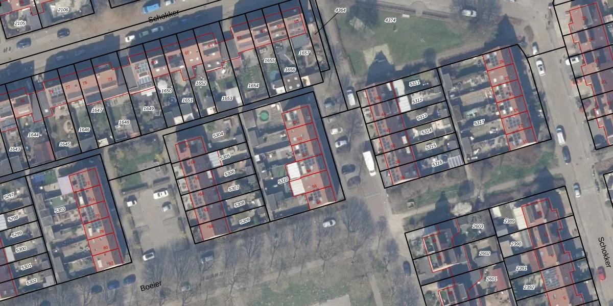 Het perceel waarop Boeier 52 staat heeft een oppervlakte van 943 m². Dit is een groot perceel. De perceeloppervlakte wordt geregistreerd door het Kadaster. Gedetailleerde informatie over de maten van dit perceel kunt u vinden in het rapport Kadastrale kaart met maatvoering van Boeier 52.