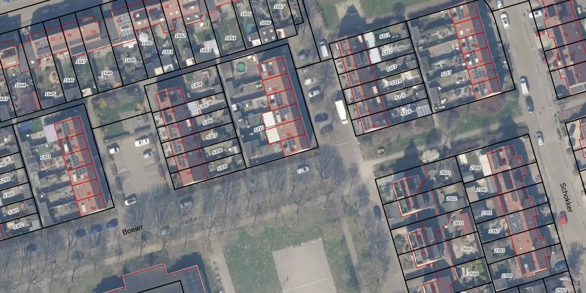 Het perceel waarop Boeier 58 staat heeft een oppervlakte van 943 m². Dit is een groot perceel. De perceeloppervlakte wordt geregistreerd door het Kadaster. Gedetailleerde informatie over de maten van dit perceel kunt u vinden in het rapport Kadastrale kaart met maatvoering van Boeier 58.