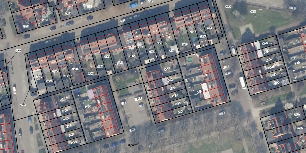 Het perceel waarop Boeier 70 staat heeft een oppervlakte van 247 m². Dit is een middelgroot perceel. De perceeloppervlakte wordt geregistreerd door het Kadaster. Gedetailleerde informatie over de maten van dit perceel kunt u vinden in het rapport Kadastrale kaart met maatvoering van Boeier 70.