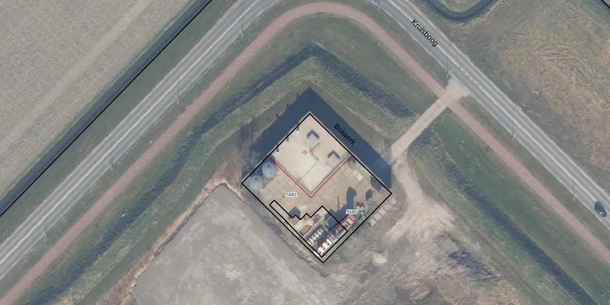 Bolwerk 25 is gelegen op kadastraal perceel ZWD03A5581. Deze kadastrale aanduiding is uniek en wordt gebruikt door het Kadaster om eigendomsrechten en andere zakelijke rechten vast te leggen. Het perceel maakt onderdeel uit van de kadastrale gemeente Zeewolde.