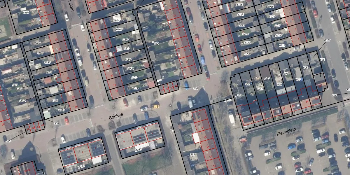 Het adres is gelegen op perceel 604 in de sectie A en de kadastrale gemeente Zeewolde. De kadastrale aanduiding is aldus ZWD03-A-604. Het perceel is kleiner dan gemiddeld in Zeewolde. Het perceel is 58 m² groot, terwijl het gemiddelde ligt op 1,9 ha. Het grootste perceel in de kadastrale gemeente is 6,16 km². Het kleinste perceel heeft een oppervlakte van 0 m². Er zijn 4 adressen aanwezig op het perceel. De laatste wijziging in het de Basisregistratie Kadaster (BRK) was op 03-01-2006.