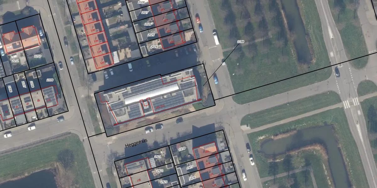 Het adres is gelegen op perceel 2148 in de sectie E en de kadastrale gemeente Zeewolde. De kadastrale aanduiding is aldus ZWD03-E-2148. Het perceel is kleiner dan gemiddeld in Zeewolde. Het perceel is 1418 m² groot, terwijl het gemiddelde ligt op 1,9 ha. Het kleinste perceel in de kadastrale gemeente is 0 m² groot. De grootste perceeloppervlakte is 6,16 km². Op het perceel liggen in totaal 21 adressen. In de Basisregistratie Kadaster (BRK) werden de grenzen van het perceel geregistreerd op 05-07-2007.