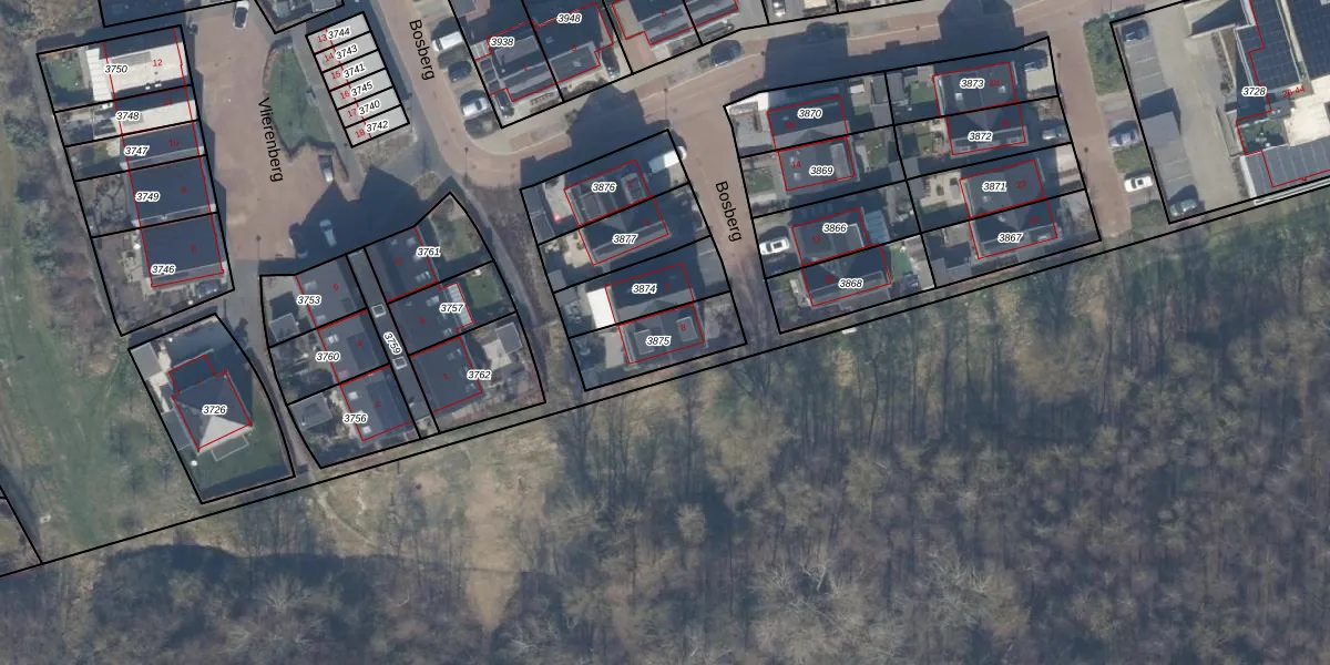 Het perceel waarop Bosberg 8 staat heeft een oppervlakte van 210 m². Dit is een middelgroot perceel. De perceeloppervlakte wordt geregistreerd door het Kadaster. Gedetailleerde informatie over de maten van dit perceel kunt u vinden in het rapport Kadastrale kaart met maatvoering van Bosberg 8.