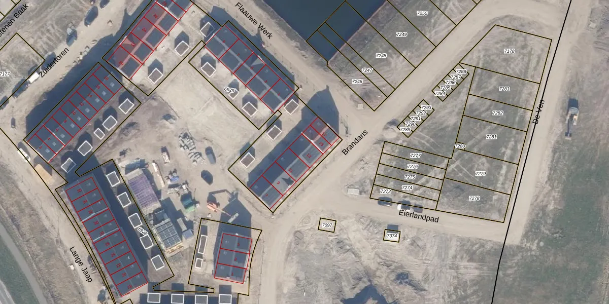 Het perceel waarop Brandaris 13 staat heeft een oppervlakte van 1977 m². Dit is een zeer groot perceel. De perceeloppervlakte wordt geregistreerd door het Kadaster. Gedetailleerde informatie over de maten van dit perceel kunt u vinden in het rapport Kadastrale kaart met maatvoering van Brandaris 13.