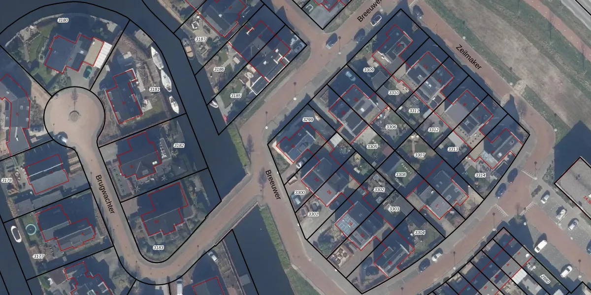 Het perceel waarop Breeuwer 30 staat heeft een oppervlakte van 306 m². Dit is een groot perceel. De perceeloppervlakte wordt geregistreerd door het Kadaster. Gedetailleerde informatie over de maten van dit perceel kunt u vinden in het rapport Kadastrale kaart met maatvoering van Breeuwer 30.