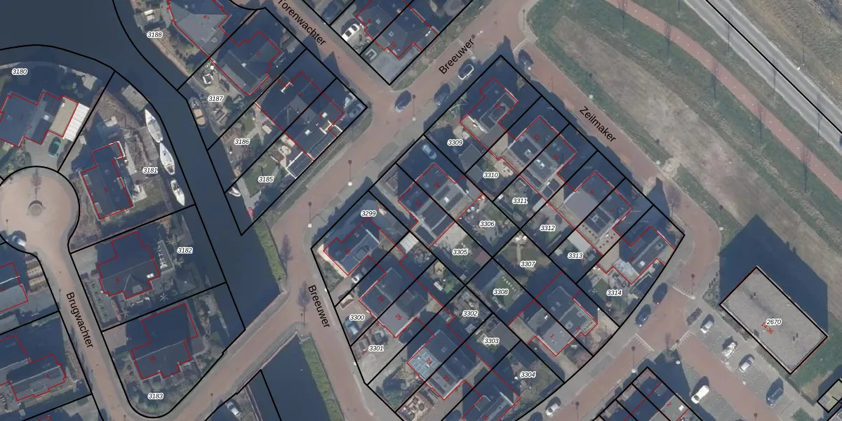Het perceel waarop Breeuwer 32 staat heeft een oppervlakte van 300 m². Dit is een groot perceel. De perceeloppervlakte wordt geregistreerd door het Kadaster. Gedetailleerde informatie over de maten van dit perceel kunt u vinden in het rapport Kadastrale kaart met maatvoering van Breeuwer 32.