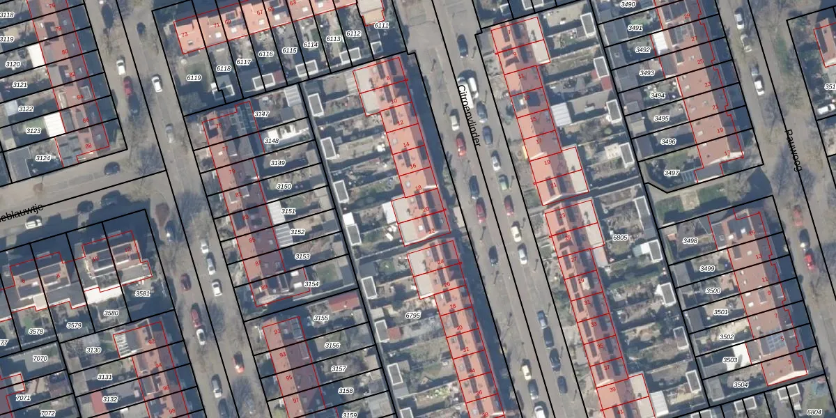 Het perceel waarop Citroenvlinder 20 staat heeft een oppervlakte van 2936 m². Dit is een zeer groot perceel. De perceeloppervlakte wordt geregistreerd door het Kadaster. Gedetailleerde informatie over de maten van dit perceel kunt u vinden in het rapport Kadastrale kaart met maatvoering van Citroenvlinder 20.