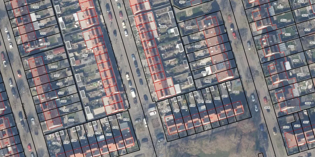 Het adres is gelegen op perceel 6805 in de sectie A en de kadastrale gemeente Zeewolde. De kadastrale aanduiding is aldus ZWD03-A-6805. Het perceel is kleiner dan gemiddeld in Zeewolde. Het perceel is 2934 m² groot, terwijl het gemiddelde ligt op 1,9 ha. Het kleinste perceel in de kadastrale gemeente is 0 m² groot. De grootste perceeloppervlakte is 6,16 km². Op het perceel zijn 18 adressen aanwezig. In de Basisregistratie Kadaster (BRK) werden de grenzen van het perceel geregistreerd op 21-03-2024.