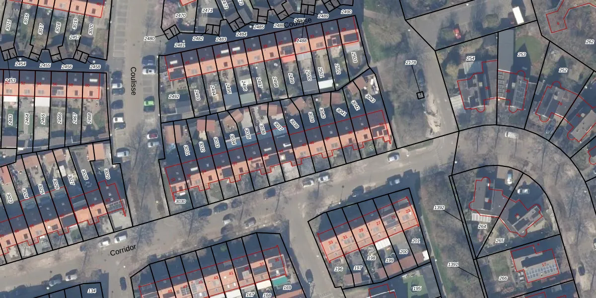 Gebruik de zoekbalk of klik op een perceel voor informatie over de adressen binnen dit perceel.