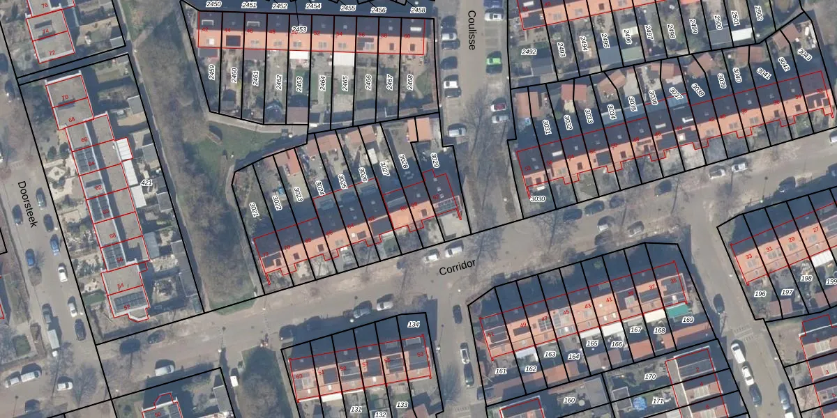 Het perceel waarop Corridor 58 staat heeft een oppervlakte van 184 m². Dit is een middelgroot perceel. De perceeloppervlakte wordt geregistreerd door het Kadaster. Gedetailleerde informatie over de maten van dit perceel kunt u vinden in het rapport Kadastrale kaart met maatvoering van Corridor 58.