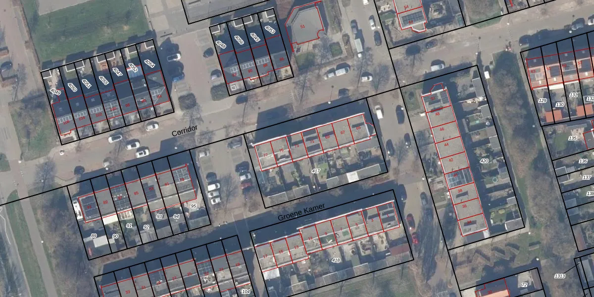 Het perceel waarop Corridor 73 staat heeft een oppervlakte van 1121 m². Dit is een zeer groot perceel. De perceeloppervlakte wordt geregistreerd door het Kadaster. Gedetailleerde informatie over de maten van dit perceel kunt u vinden in het rapport Kadastrale kaart met maatvoering van Corridor 73.