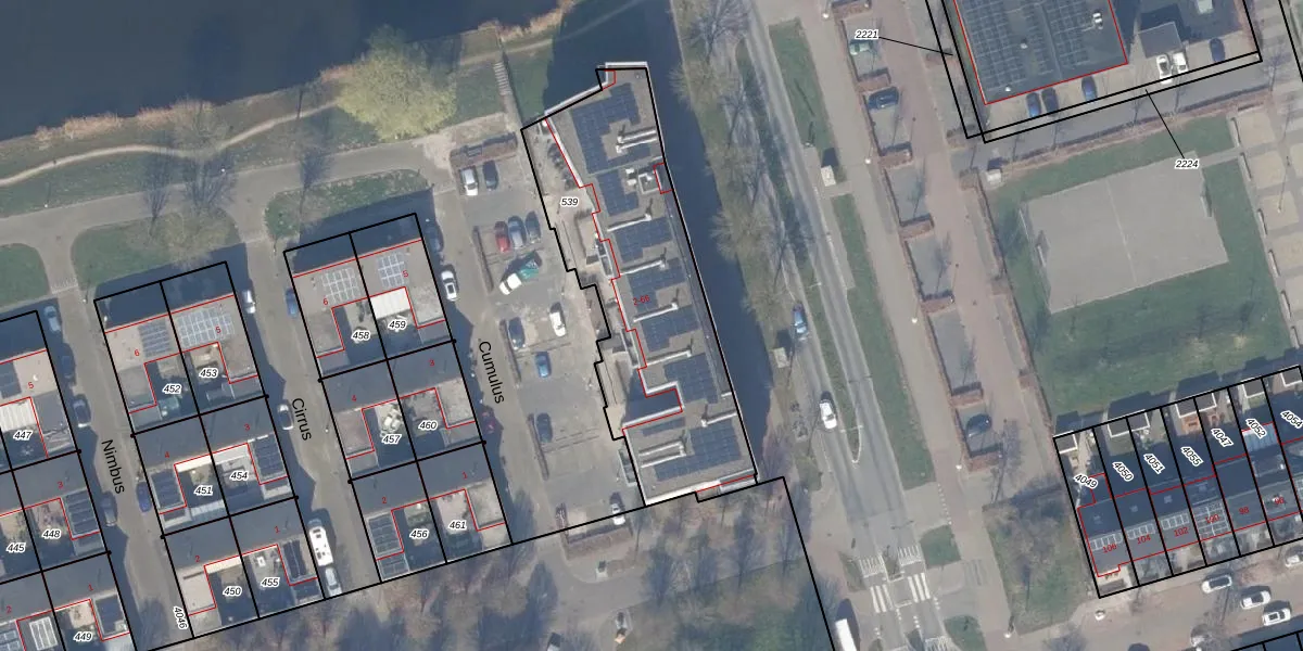 Het perceel waarop Cumulus 22 staat heeft een oppervlakte van 1196 m². Dit is een zeer groot perceel. De perceeloppervlakte wordt geregistreerd door het Kadaster. Gedetailleerde informatie over de maten van dit perceel kunt u vinden in het rapport Kadastrale kaart met maatvoering van Cumulus 22.
