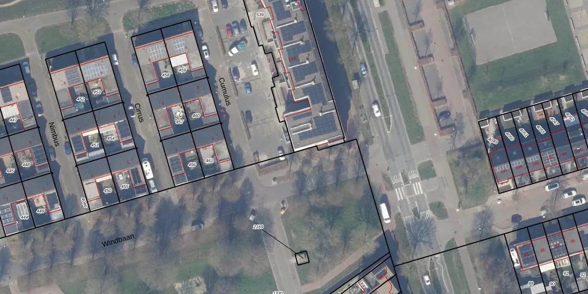 Het perceel waarop Cumulus 28 staat heeft een oppervlakte van 1196 m². Dit is een zeer groot perceel. De perceeloppervlakte wordt geregistreerd door het Kadaster. Gedetailleerde informatie over de maten van dit perceel kunt u vinden in het rapport Kadastrale kaart met maatvoering van Cumulus 28.