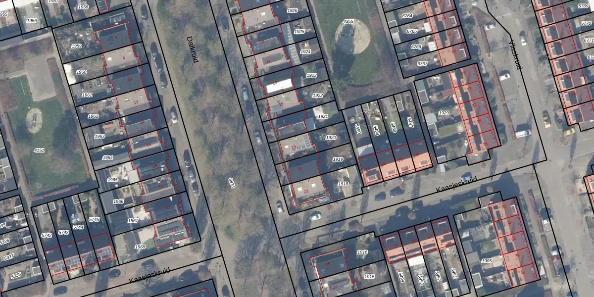 Het perceel waarop Dalkruid 19 staat heeft een oppervlakte van 201 m². Dit is een middelgroot perceel. De perceeloppervlakte wordt geregistreerd door het Kadaster. Gedetailleerde informatie over de maten van dit perceel kunt u vinden in het rapport Kadastrale kaart met maatvoering van Dalkruid 19.