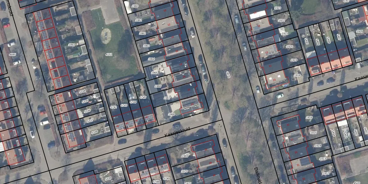 Het perceel waarop Dalkruid 22 staat heeft een oppervlakte van 215 m². Dit is een middelgroot perceel. De perceeloppervlakte wordt geregistreerd door het Kadaster. Gedetailleerde informatie over de maten van dit perceel kunt u vinden in het rapport Kadastrale kaart met maatvoering van Dalkruid 22.