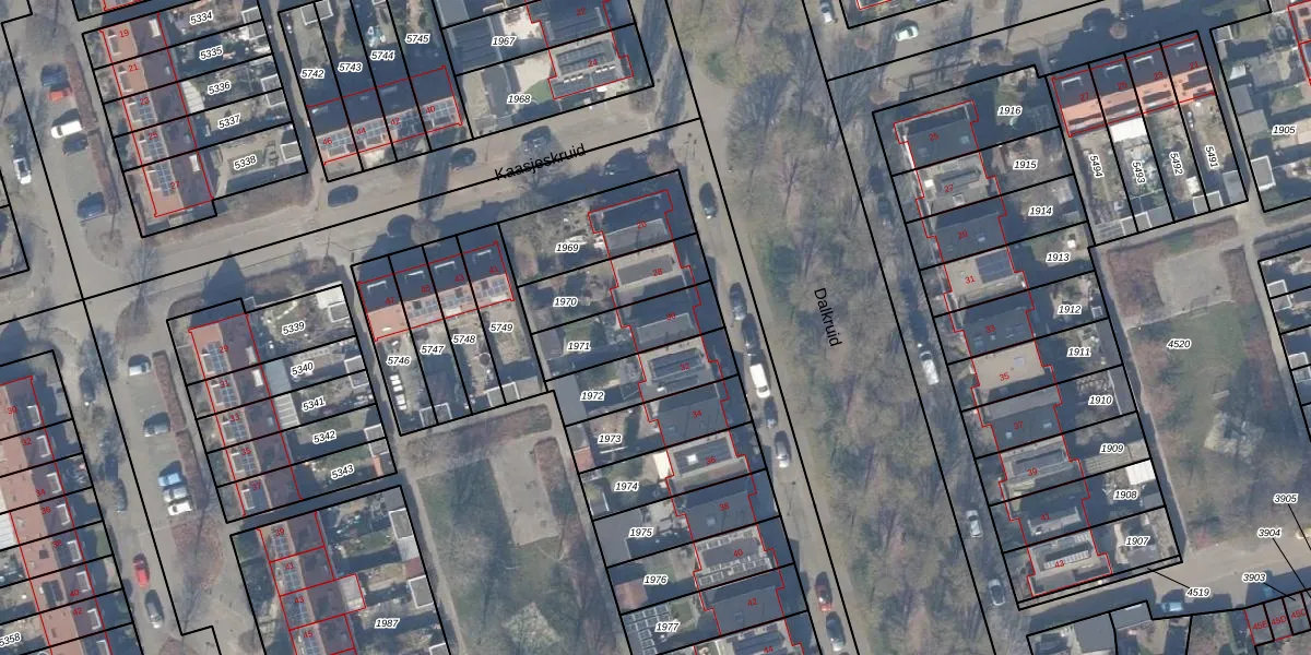 Het perceel waarop Dalkruid 30 staat heeft een oppervlakte van 215 m². Dit is een middelgroot perceel. De perceeloppervlakte wordt geregistreerd door het Kadaster. Gedetailleerde informatie over de maten van dit perceel kunt u vinden in het rapport Kadastrale kaart met maatvoering van Dalkruid 30.