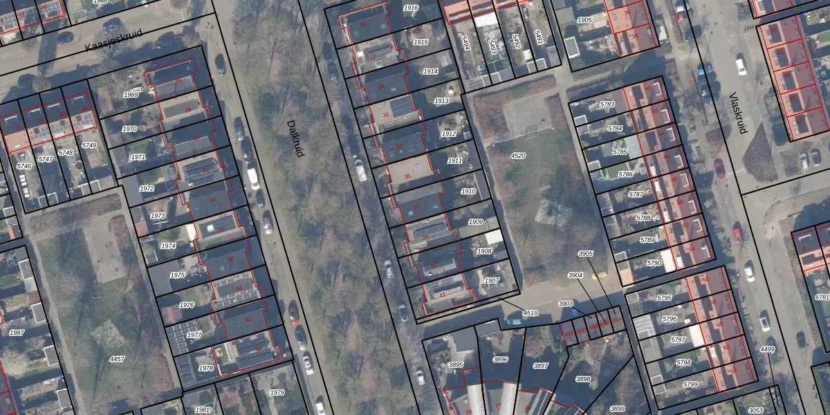 Het perceel waarop Dalkruid 37 staat heeft een oppervlakte van 194 m². Dit is een middelgroot perceel. De perceeloppervlakte wordt geregistreerd door het Kadaster. Gedetailleerde informatie over de maten van dit perceel kunt u vinden in het rapport Kadastrale kaart met maatvoering van Dalkruid 37.