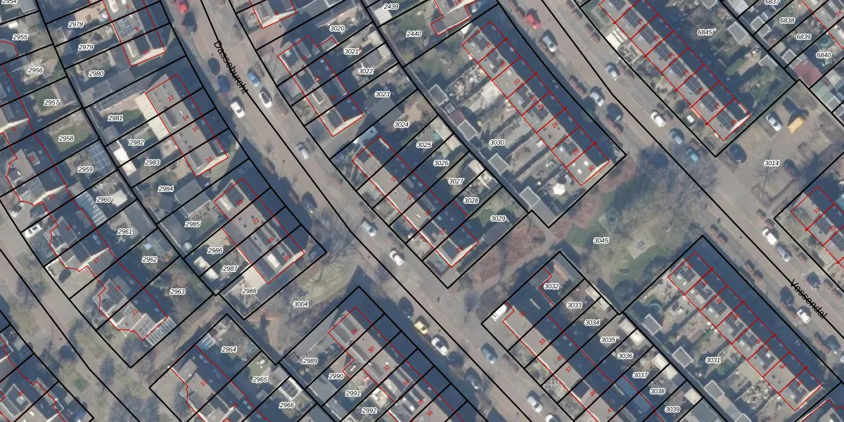 Het adres is gelegen op perceel 3027 in de sectie A en de kadastrale gemeente Zeewolde. De kadastrale aanduiding is aldus ZWD03-A-3027. De gemiddelde perceelgrootte in Zeewolde is 1,9 ha. Dit perceel is kleiner: de perceeloppervlakte bedraagt 150 m². De grootste perceeloppervlakte in de kadastrale gemeente is 6,16 km². De kleinste oppervlakte bedraagt 0 m². Er zijn geen andere adressen aanwezig op het perceel. De huidige grenzen van het perceel zijn digitaal in de Basisregistratie Kadaster (BRK) geregistreerd op 20-08-1997.