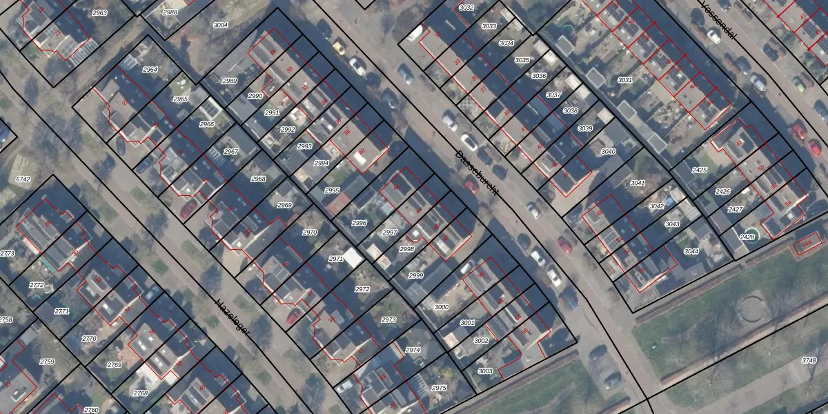 Gebruik de zoekbalk of klik op een perceel voor informatie over de adressen binnen dit perceel.