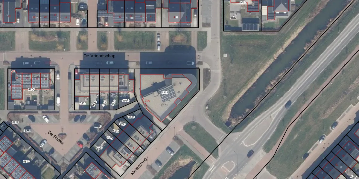 Het perceel waarop De Foeke 26 staat heeft een oppervlakte van 900 m². Dit is een groot perceel. De perceeloppervlakte wordt geregistreerd door het Kadaster. Gedetailleerde informatie over de maten van dit perceel kunt u vinden in het rapport Kadastrale kaart met maatvoering van De Foeke 26.