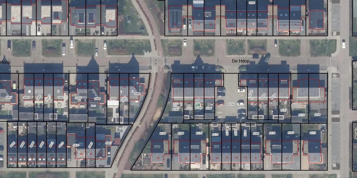 Het perceel waarop De Hoop 19 staat heeft een oppervlakte van 262 m². Dit is een middelgroot perceel. De perceeloppervlakte wordt geregistreerd door het Kadaster. Gedetailleerde informatie over de maten van dit perceel kunt u vinden in het rapport Kadastrale kaart met maatvoering van De Hoop 19.