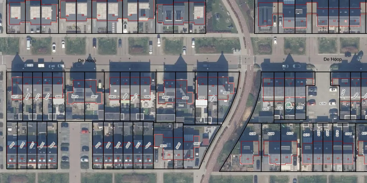 Het perceel waarop De Hoop 27 staat heeft een oppervlakte van 303 m². Dit is een groot perceel. De perceeloppervlakte wordt geregistreerd door het Kadaster. Gedetailleerde informatie over de maten van dit perceel kunt u vinden in het rapport Kadastrale kaart met maatvoering van De Hoop 27.