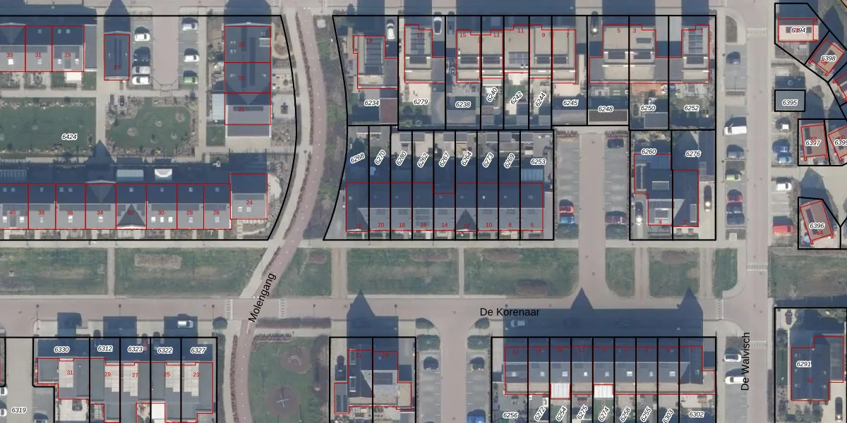 Het perceel waarop De Korenaar 16 staat heeft een oppervlakte van 133 m². Dit is een middelgroot perceel. De perceeloppervlakte wordt geregistreerd door het Kadaster. Gedetailleerde informatie over de maten van dit perceel kunt u vinden in het rapport Kadastrale kaart met maatvoering van De Korenaar 16.