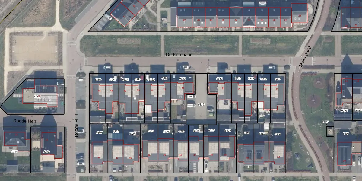 Het perceel waarop De Korenaar 33 staat heeft een oppervlakte van 292 m². Dit is een middelgroot perceel. De perceeloppervlakte wordt geregistreerd door het Kadaster. Gedetailleerde informatie over de maten van dit perceel kunt u vinden in het rapport Kadastrale kaart met maatvoering van De Korenaar 33.