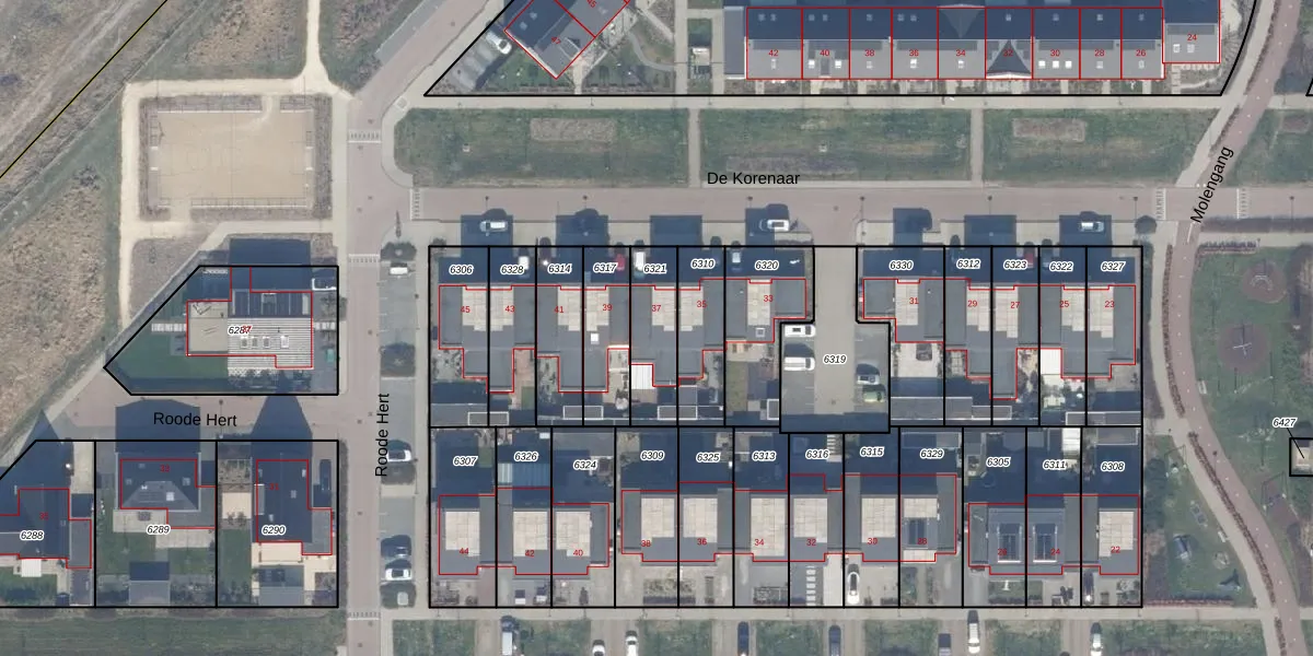 Het perceel waarop De Korenaar 37 staat heeft een oppervlakte van 198 m². Dit is een middelgroot perceel. De perceeloppervlakte wordt geregistreerd door het Kadaster. Gedetailleerde informatie over de maten van dit perceel kunt u vinden in het rapport Kadastrale kaart met maatvoering van De Korenaar 37.