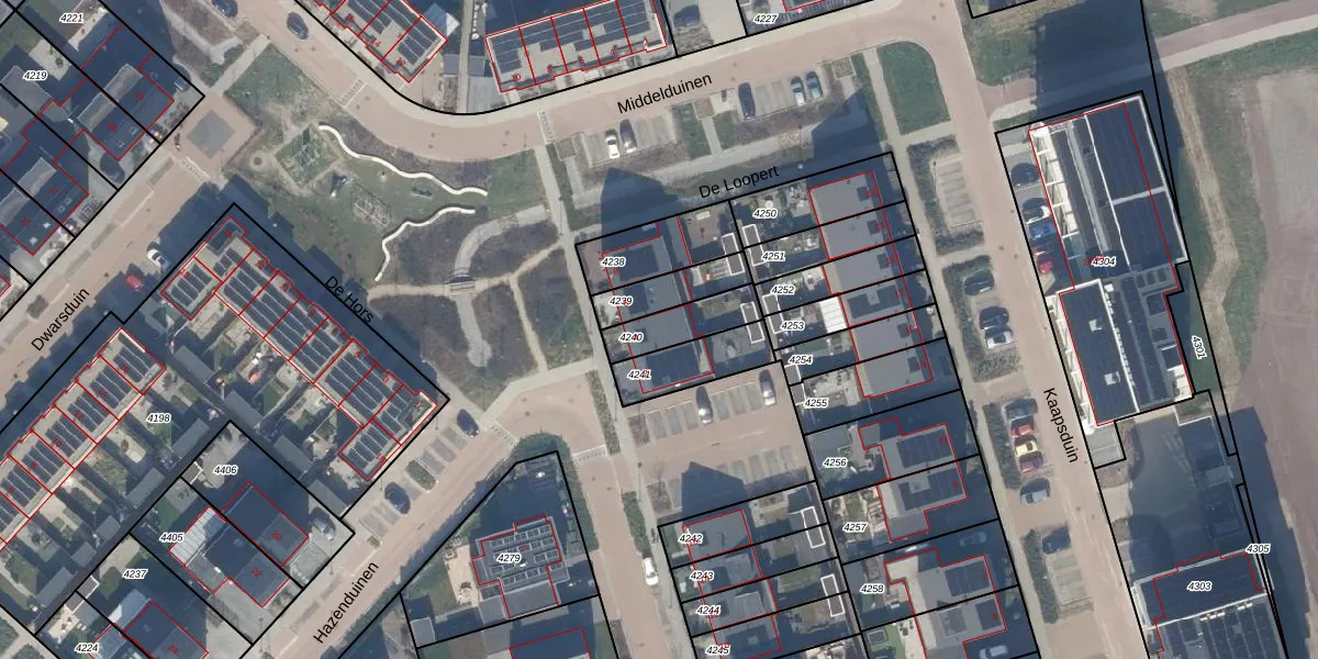 Het perceel waarop De Loopert 4 staat heeft een oppervlakte van 136 m². Dit is een middelgroot perceel. De perceeloppervlakte wordt geregistreerd door het Kadaster. Gedetailleerde informatie over de maten van dit perceel kunt u vinden in het rapport Kadastrale kaart met maatvoering van De Loopert 4.